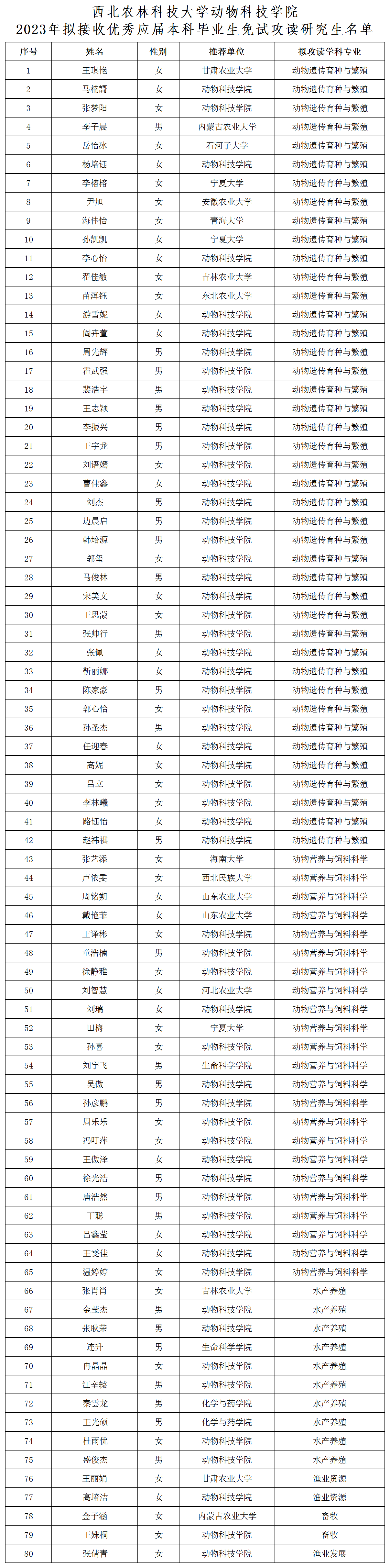 关于2023年拟接收优秀应届本科毕业生免试攻读研究生名单的公示