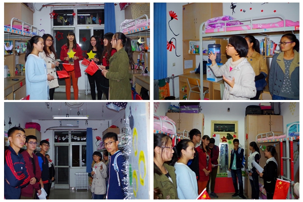 评分人员准备就绪后,前往宿舍楼参观了各个宿舍的装饰情况并给予打分。各个参选宿舍布置效果显著异常,温馨的装饰,独特的创意,和谐的氛围均将宿舍的主题显现的淋漓尽致,深深的吸引了所有人的目光。各个宿舍主题形式多样,风格不一,无论是魔幻神秘的混合风格,清新自然的暖心风格,还是随性肆意的混搭风格,或以鲜红色调为主爱国主义风格,均是引人注目,夺人眼球。