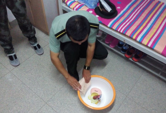 为规范学生宿舍的内务整理标准,为新生创造一个温馨、舒适的居住环境,9月4日晚,国产在线 军事训练教官在辅导员、学生干部的陪同下来到学生公寓指导新生整理内务。