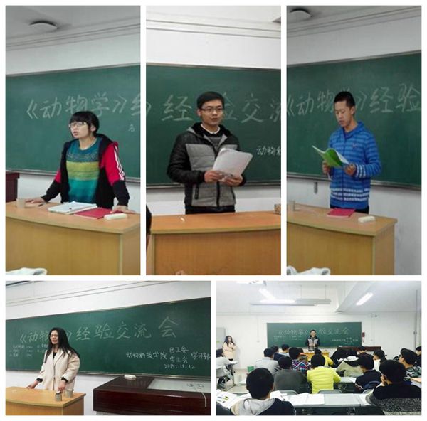 交流会上,动科145班的张效禹强调:有的放矢。此外,刻苦踏实的学习态度也必不可少,他说平时上课要留意老师讲的要点,并结合复习资料有选择的复习,才能达到事半功倍的效果。考前突击通宵学习的考前突击并不可靠,影响身体且得不到预想的效果。动科142班的王淑婷同学表示,平时扎实的学习才最重要,她结合自己经验为同学们勾画了动物学学习的重点。动科141班的杨坤同学给同学们分享了自己对考试题型的见解,幽默言语带动现场轻松气氛。结束了经验分享后,在场的15级同学们也积极提出学习中遇到的问题与困惑,学长学姐积极为其答疑解惑。