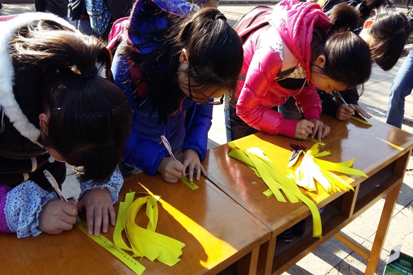 冬季的阳光不灼热,却温暖着人心。活动期间,路过同学们的热情参与体现出西农学子皆有一颗感恩的心。活动由“感恩横幅签名”和“祝福黄丝带”两部分组成。两活动皆是为了让同学们重视感恩,勇于表达自己的感恩之情。祝福黄丝带上内容丰富动人,有的同学写到:“亲爱的爸爸妈妈,谢谢你们这么多年对我的栽培。原你们身体健康,岁月永不老”有的同学还写到:“感谢你陪我度过那段最艰难的时光”等等。写着满满祝福的黄丝带最后由工作人员系在北绣旁的一棵树上,那一条条在树上飘飞的丝带,就像一颗颗满含感恩炙热的心,温暖了这个寒冬。