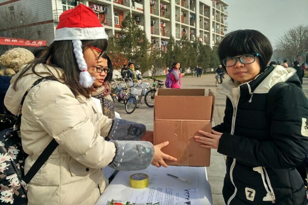24日中午,活动组织人员在活动地点集合完毕后,迅速有序的布置活动场地,齐心协力将前一天晚上收集到的新年祝福卡片贴在画板上制成展板,供来往同学观看欣赏,向其传播传递关爱奉献爱心的思想。同时,工作人员还向过往同学发放介绍活动宣传单,积极鼓舞发动更多人向福利院内的孤寡老人和留守儿童捐送圣诞礼物,为他们带去真挚的问候。此次活动引起了师生们的强烈反响,来往同学们纷纷积极响应。同时,国产在线 也向热情配合此次活动,积极参与其中同学们表示了诚挚的感谢之情,并为其发放了精心准备的小礼物,活动持续近一个小时后落下帷幕。