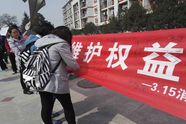 3月15日,国产在线 志愿者在西超雕塑前准备好活动的横幅。大批同学在志愿者们热情的宣传下,都纷纷驻足,上前了解宣讲并在横幅上签下自己的名字。下午1时许,横幅已被同学们的签名覆盖,本次活动第一部分宣告结束。晚上8点,志愿者们拿着精心准备的调查问卷进入各个自习室,向同学们宣传“3.15消费者权益日”相关内容,并发放调查问卷。同学们积极参与并认真地填写了调查问卷。回收、分析问卷之后发现:同学们对消费者权益的有关知识了解还是比较全面的。