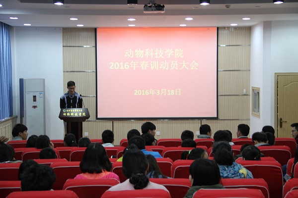 为积极备战校运动会,号召鼓励更多同学“走下网络、走出宿舍、走向操场”,3月18日,国产在线 于动科楼107会议室举行2016年春训动员大会。国产在线 体育辅导员任启俊、王斌,团工委书记李锐,辅导员张士军,100余名春训队员参加了此次大会。