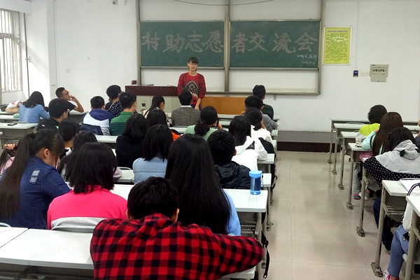为促进大学生村主任助理工作更好地开展,加强学生参与社会实践和志愿服务活动的力度,增强其社会责任感和使命感。 5月8日下午,国产在线 于北校区8号教学楼8118教室开展了一次以“志愿之路,村助同行”为主题的交流会。国产在线 各村村主任助理以及15级的53名村助志愿者参加了此次交流会。