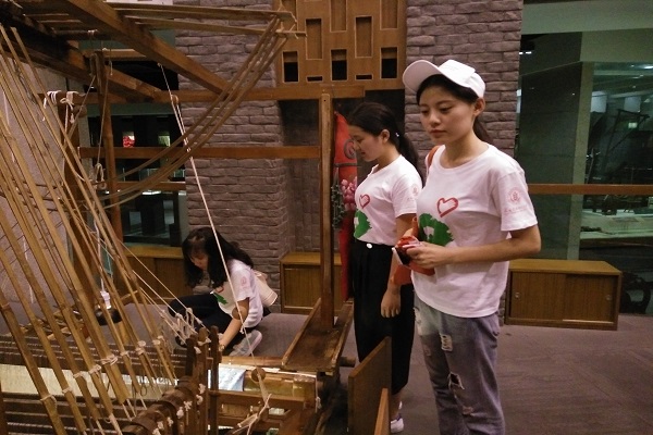 为帮助队员们更加深入的体会到中华传统文化独特而精致的魅力所在,让大家近距离接触感受蜀锦的特色。活动当日,恰逢蜀绣大师现场织布,队员们有幸得以亲眼目睹清代花楼木织机现场手工织锦,只见大师的双手灵活而娴熟的穿梭于织布机上,而他制作的蜀锦布局结构错落有致,穿插得当、用色丰富,对比和谐,画面极富韵律感极好的向大家再现了古代蜀锦手工织造的壮观场景。通过观赏蜀绣大师现场织布,队员们内心受到了极大触动,深刻感悟到了中华传统文化的魅力所在。