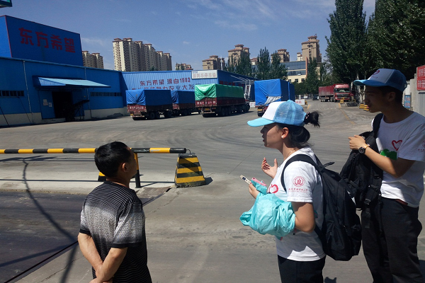 在希望饲料公司管理员的陪同下,一行人先后参观了装卸饲料车间、饲料加工车间、饲料储存仓库、以及该公司的实验场地。在询问相关工作人员后,调研队发现该公司主要经营方向为饲料的加工以及销售,其原料则有专门的供货渠道,在加工完成后,其成品销往全国除内蒙古自治区外多个地方,如陕西、山西、宁夏等,口碑极好。此外,经过咨询调研,队员们了解到,该公司的专业化程度极高,就每一内容都做了极其细致的划分,力求具体问题具体分析,为不同品种、功能、大小、成长阶段的动物提供不同的具有针对性的营养饲料,包括牛饲、羊饲、猪饲、鸡饲等。调研团详细了解了高峰蛋鸡的配合饲料以及仔猪后期的配合饲料,并针对它们的组成原料,保质期,产品成分分析保证值以及相关药物添加剂询问了工作人员,展开调研,收获颇多。