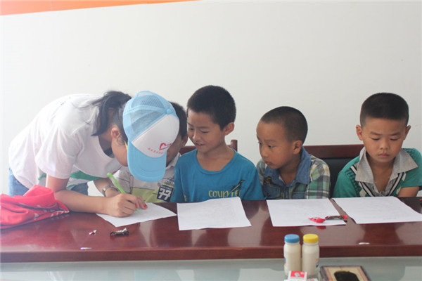 初次见到队员们时,留守儿童都表现得很腼腆,不爱讲话。从对他们得调查中得知,他们都非常懂事,很小就会做家务、干农活。问到关于爸爸妈妈外出务工问题他们低头不语,半掩着问卷自己写着,也许这是他们心中的秘密,对妈妈爸爸思念的秘密,不愿告诉别人。看着让人心疼。