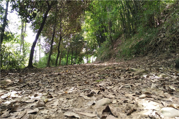 四川茶马古道又称秦汉驿道,其遗址位于骑龙山的原始森林中,它虽经历了千百年风雨剥蚀和人为的破坏,但尚能保存着平乐较为完整的一段。在当地居民的热心指点下,队员们顺利抵达刻有“南方丝绸之路遗迹”的牌坊下。沿着蜿蜒的山间小路,队员们向上而行,很快找到了那条承载着光辉岁月的丝路遗迹------秦汉驿道。驿道中央用平顶大河卵石砌成一条笔直的中心线,两旁用鳞次栉比的河卵石铺砌路面,十分牢固。走入铺满枯叶的驿道,脚底时时发出“沙沙”的声响,耳边似乎还回响着驮运丝绸的马队清脆的马蹄声和铜铃声,队员们无不惊叹于古人的智慧和匠心,感叹丝绸之路的文化深渊。