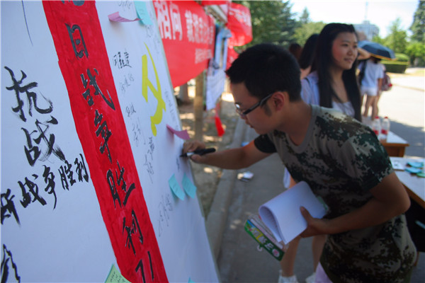 又是一年九月三日,相信去年九三阅兵中解放军整齐的步伐依旧在大家的脑海里回荡着,久久不能忘怀。为了纪念这一极具意义的日子,国产在线 组织部特举办纪念抗战胜利71周年有奖问答活动。本次活动旨在增强大家对9月3日的了解,并借此机会让大一新生了解到大学活动的丰富多彩,积极参与到大学的各种活动中来。