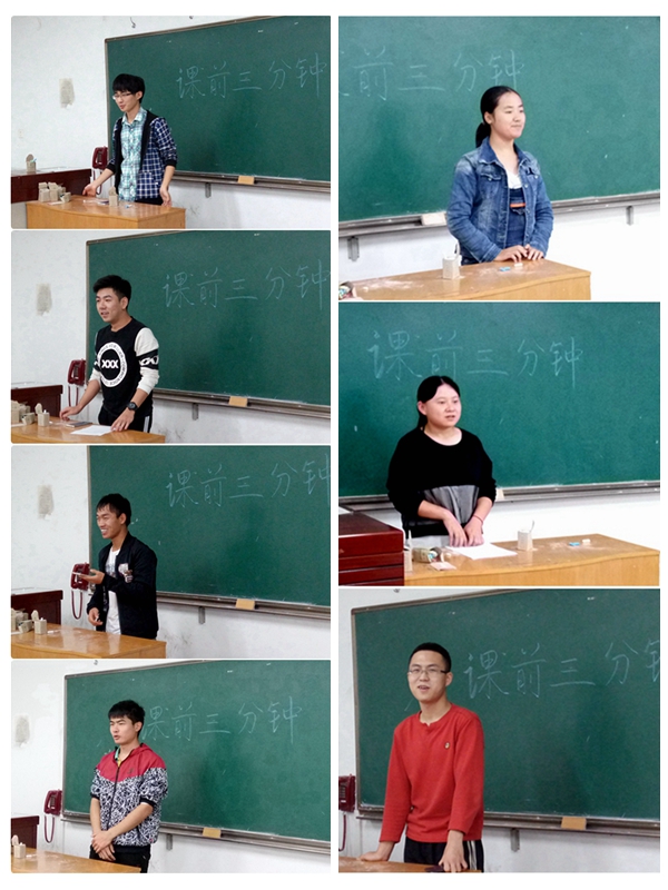 为促使学生自主地提高自己的综合能力,增强学生的自信心,提高同学们的表达能力。草业152班组织委员潘胜难同学和刘露同学共同组织班里全体同学于八号楼举办“课前三分钟”活动。