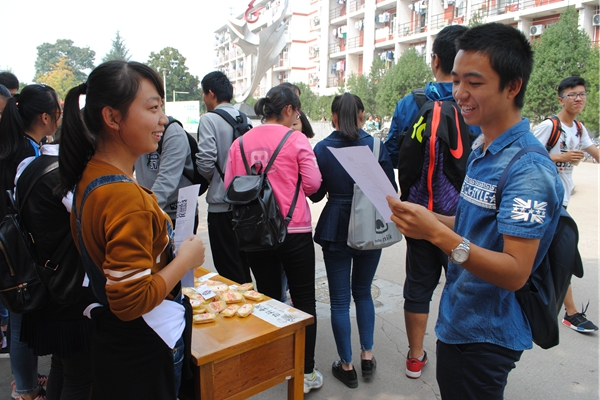 活动前期准备了活动宣传板和有关陕西省著名景点及特色文化问答题,以便大家了解此次活动的主题和内容,还准备了小零食和精美书签作为礼品,只要参与活动的同学即可获得精美书签以及美味的小零食。本次活动以签名答题为主,大家分工合作,活动有条不紊的展开,有趣的横幅宣传、精美的书签和美味的零食立即就吸引住了同学们的眼球,同学们都踊跃参与此次活动,纷纷在横幅上签下自己的名字,表达他们对本次活动的支持。工作人员也对同学们提出的问题进行详细地解答,同时也为同学们讲解陕西省各著名景点、旅游小窍门以及外出旅游需要做好的安全防范措施。现场的气氛高涨,同学纷纷参与其中。