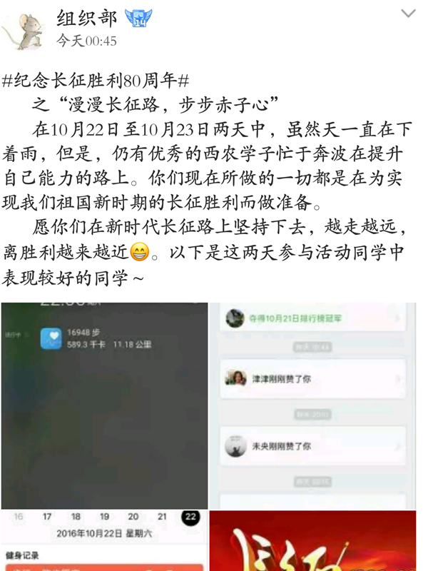 本次活动面向全体本科生展开,主要通过国产在线 组织部官方QQ与同学们互动,新颖的活动方式广受大家关注。线上活动名为“漫漫长征路,步步赤子心”,旨在鼓励同学们在周末走出宿舍,学习知识和技能,丰富自我。同学们积极走进图书馆,浏览网页,查阅相关历史材料,积极学习长征精神。另外,活动通过分享链接组织同学们观看并学习了习近平总书记在长征胜利80周年大会上的发言,并对学习精神进行归纳总结,表达自己的学习感悟,并纷纷表示会走好新的长征路,走好自己的长征路,为中国梦的实现助力。动科国产在线 李亦洲同学说:“此次活动形式比较新颖,不是教科书式的学习,而是自己参与其中,亲身去体验、反思,让我对长征精神有了更为实际的感触,收获满满的。”