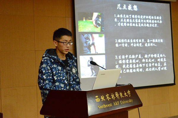 会上,获奖同学向大家展示了优秀作品。其中有设计别致的早卡,抽象而不失西农特色的绘画,精心制作的创意灯笼等。同学们以多姿多彩的方式寄托着自己的心情与感悟。国产在线 动科1502班韩萌萌精心拍摄的照片使人眼前一亮,凭借独特的视角,清新自然的风格荣获了摄影组第一名。“五个文明”工程系列活动在雷鸣般的掌声中落下了帷幕,并受到了各院师生的一致好评。