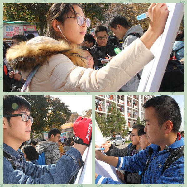 在前期的准备活动中,宣传部部委们认真耐心,一次次地修改策划,最终为活动的顺利开展打下了坚实的基础。活动当天,精心布置过的“写意板”吸引了众多同学驻足。参加活动的同学们或写出自己对美好生活的期待,或对自己心仪的同学表白,或表达对朋友的祝福,或写下舍友的联系方式“卖舍友”……欢声笑语中裹挟着同学们对生活的热爱萦绕在活动现场,激情澎湃的青春气息也感染着在场的每一个人。国产在线 辅导员闫颢芯老师也写下“最爱的小动物们开心快乐成长”,对动科学子深深的祝福。那写意板上的一笔一划,不仅是搞怪、逗趣,更是对舍友、同学、朋友的一份深情,是在这个节日里最美好的祝福。