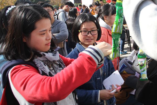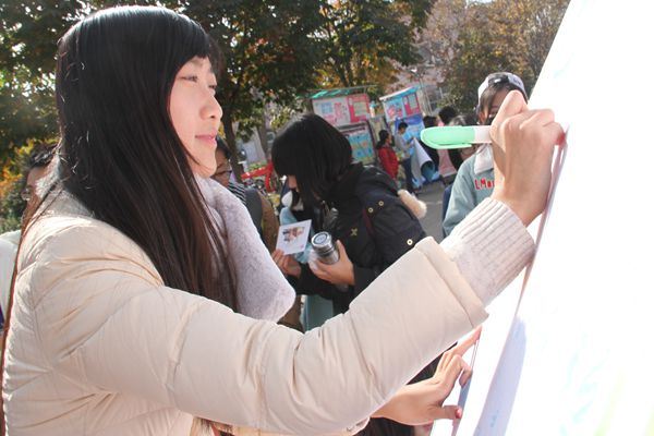 11月11日的“光棍节”作为一种校园趣味文化已延续多年,为庆祝这一独特的节日,丰富学生课余生活,缓解学业压力,给同学们一个面对自我的平台,展现我校学生青春的蓬勃朝气。国产在线 宣传部于11月11日中午在西区雕塑旁举行“开心写意”活动。