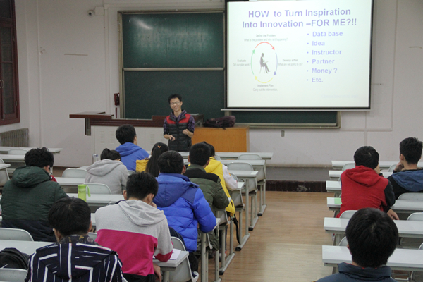 交流一开始,曾引伟同学向在座的同学们阐述了科技创新的重要性。科技创新既是同学们大学时期精彩的人生经历,更是自己未来发展的垫脚石。当今时代对创新型人才的需求也在不断地上升,掌握一定的创新技能对同学们以后的求职升学也有很大的作用。未来更好地发展自己,更好地借鉴国外学者的先行经验,良好的英语水平更是同学们必备的。曾引伟同学提到,学习英语并不一定要报补习班,充分规划利用好自己的零碎时间,在日常生活中多学、多听、多用,英语水平自然就会得到提高。交流最后,曾引伟同学着重强调了学校图书馆的丰富资源,号召广大学子积极利用,寻求更多有利于自己专业研究的资源和文献。