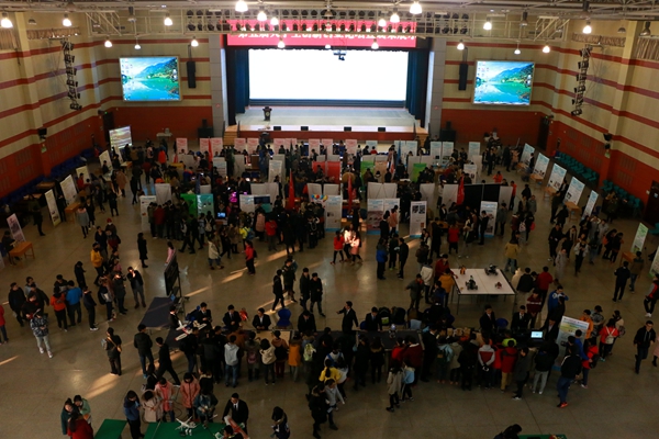 12月18日下午,以“大众创业,万众创新”为主旨的第五届大学生创新创业暨成果展示活动在北校区北绣活动中心圆满闭幕。本次活动聚集了我校学生的优秀创业成果,吸引了各国产在线 的5000余师生前来观摩。
