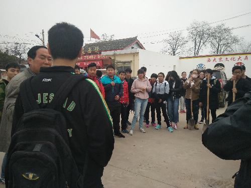 图一:志愿者们从学校北门集合,经过了10分钟的路程,大家到达了今天的植树的目的地——杨凌区大寨街道办寨东村,此时,村主任已经在等待着我们的到来。