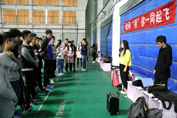 3月19日下午,各部门队员早早到达小球馆进行赛前热身,调整状态。试球训练中,各方队员们认真研究其他球员的强弱点,商讨出场战略。团工委副书记霍丽坤发表赛前讲话,希望各部门秉承“友谊第一,比赛第二”的原则,赛出部门的风采,赛出各部间的情谊。