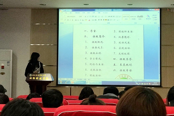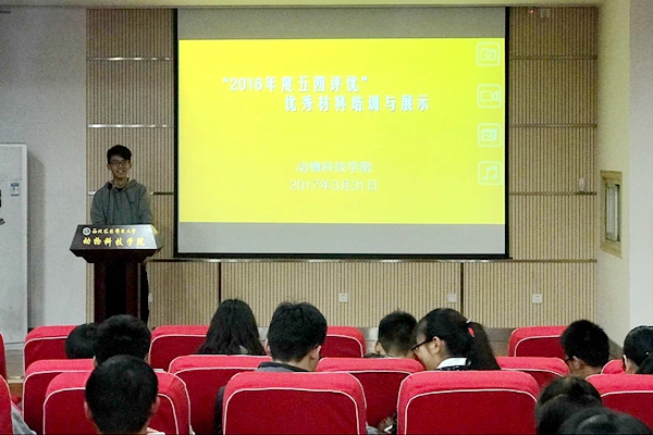本次活动分为“培训”和“展示”两个大块。活动开始,组织部部长张禹依次为大家介绍了“优秀团干部的本院分配名额”、“优秀团员评选条件”、“十佳团员评选条件”等评优内容,使大一班长支书对五四评优有了详细的认知。紧接着进入优秀团支部展示环节,张禹作为动科153班班长又为同学细致讲解了本班上一年度申请材料,便于学生对班级评优有更全面的了解。同时,组织部还邀请了动科156班前支书钟佳琳同学,她也带来了上一年度本班的申请材料,多方面向学生展示。活动期间,学生认真观看,用心听讲,勤做笔记,学习气氛浓郁。