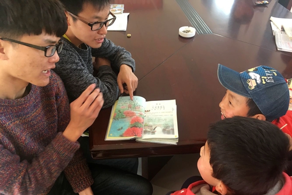 志愿者与小朋友正在学习交流