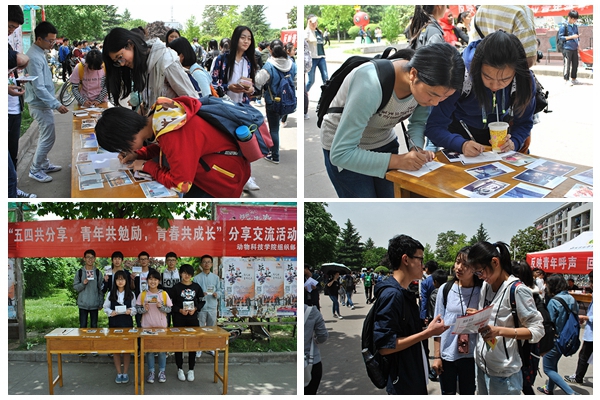 为继承发扬爱国、进步、民主、科学的五四精神,展现青年活力,营造良好校园文化气氛。在纪念五四运动98周年之际,动科国产在线 于北校区西区雕塑旁举办了“五四共分享,青年共勉励,青春共成长”分享交流活动。
