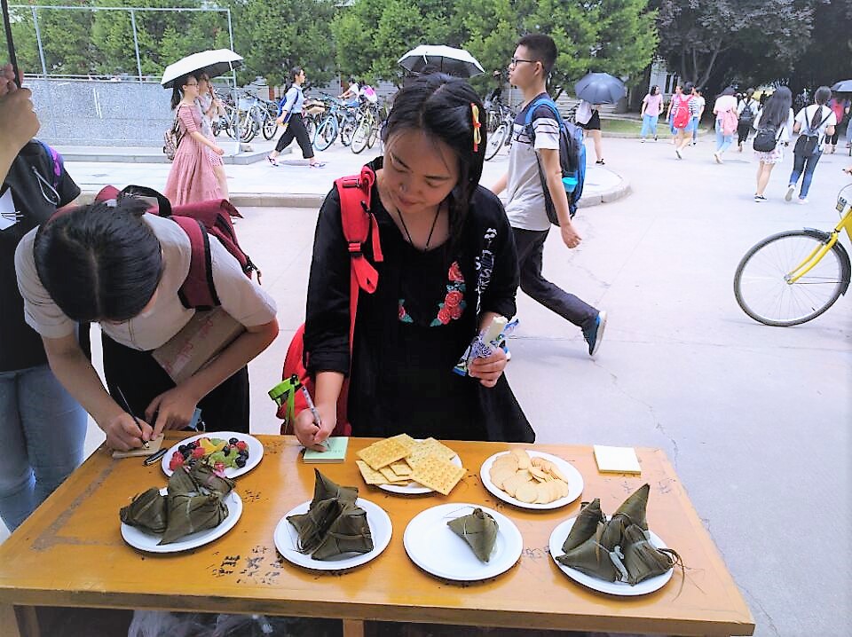为弘扬民族精神、传承中华文化,让广大师生感受节日的快乐,5月31日,在一年一度的端午节到来之际,国产在线 勤工外联部在校阳光团工委的号召之下,在西雕前举办了端午节特别活动,吸引同学们共庆端午佳节。