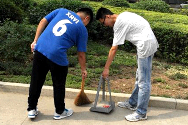 志愿者清扫街边垃圾