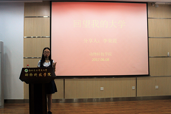 为加深学生对大学学习生活的了解,以便更好地规划未来计划,6月8日晚,国产在线 于动科楼107会议室举办了大学生百场素质教育报告会之“回望我的大学”专题交流会。会议邀请了国产在线 13级优秀学生,被推免至清华大学协和医国产在线 的李荣霞担任主讲人,与同学们分享自己大学生活的经验。