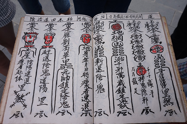 在之后的交谈中我们了解到,破四旧时期,傩戏被当作封建迷信加以摧毁,其文化形态遭到严重的摧毁,只在某些偏僻落后的山区还有所保留。郭老世代以傩戏为生,加之自己本身对傩戏文化的热爱,他在文化风波中舍命保存有关傩戏的书籍。21世纪,国家对傩文化的发掘、抢救、保护和研究尤为重视,各地许多傩文化项目被列入省市和国家非物质文化遗产名录。现如今,郭老也将这门古老的仪式传给自己的弟子及女婿,希望它永世流传。文化,因为传承而永存,因为坚守而美丽。