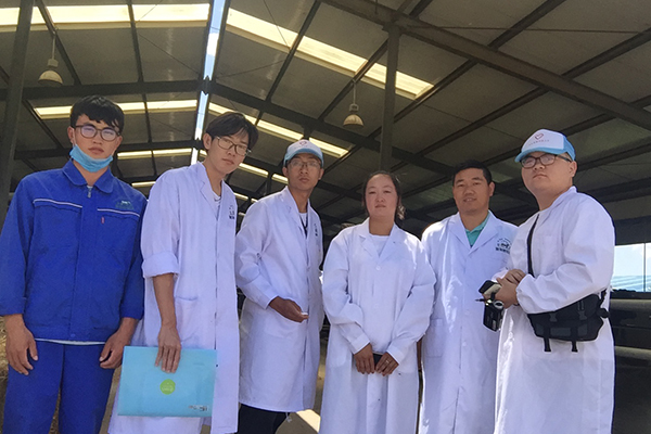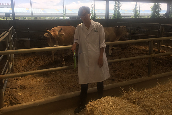 为将理论联系实际,提高专业认知度,队员们来到牧场的养殖区,更加深入的了解“壹加壹”肉牛养殖模式。交谈过程中,技术人员对“壹加壹”肉牛的人手安排、场地分配、基本设施安排、养殖方式和壹加壹企业特色给我们做了详尽的介绍。队员们了解到,壹加壹牧场的存栏数达到了10万头之多,仅成年牛就有6个大棚养殖区,和800亩的露天养殖区。28个月就可以出栏,平均重量可达到700KG以上。技术人员还给队员们提出了关于养牛时候的一些注意事项,如饲料、饮水、温度等方面,通过在“壹加壹”牧场的学习,深入养殖一线,实现了产业和专业研究相结合,提高了队员们的专业素养。