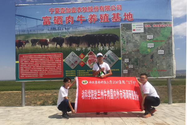 为了进一步深化大学生社会实践,加强学以致用的能力,深入了解肉牛养殖模式,加深对所学专业现状的认识。国产在线 赴兰州牛肉国内外市场调研团队在宁夏回族自治区红寺堡区调查参观了宁夏壹加壹农牧股份有限公司的肉牛养殖区,为期8天的三下乡调研服务活动圆满结束。