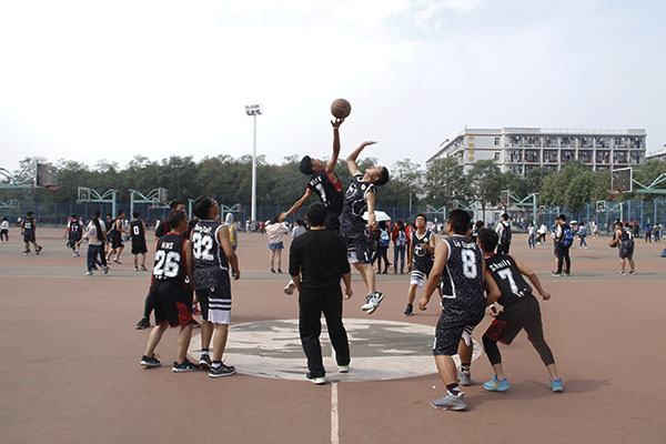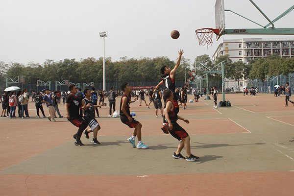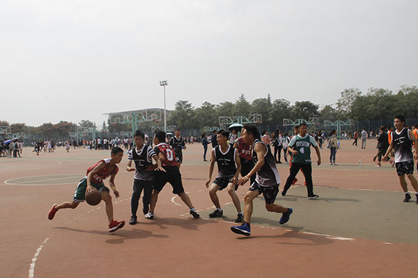 比赛共分为10个赛队,分两组进行单循环角逐。比赛一开始,双方都使出浑身解数,希望拉大比分。队员们展现出自己精彩的篮球技术:转身、过人、变向、跳步上篮。在同学们的助威声中,运动员们快速进入状态,并且有了极大信心,在良好配合下不断进步。在比赛过程中,抢、传、投一气呵成,特别是传球,两位队员距离虽远,可球在空中划了个优美的弧线后,准确无误地落到队友手中,一个眼神一个动作,就能完成默契的配合。激战片刻后,双方都放慢了节奏,以投篮为主,一次次激动人心的进球不仅推动了比赛进展,也收获了场下的欢呼声与赞叹。