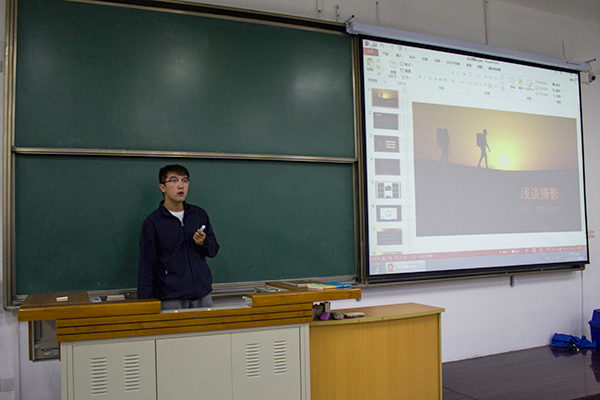 本次培训会邀请到了原团学干部、15级本科生杨雨桐、魏振宇、徐哲、周彩妮四人作为主讲嘉宾。原团工委宣传部副部长杨雨桐在技巧讲解前先讲述了新闻宣传对于在场各位同学的重要性,同时指出新闻图片是新闻宣传不可或缺的环节。随后,他分别从单反相机的参数、拍摄构图等方面全面而简洁地进行了讲解,通俗易懂而又面面俱到,不时的小幽默也赢得了同学们的阵阵掌声。接下来,动科152班的魏振宇同学以实际操作为主题指出在大家亲身进行拍摄时容易出现的问题,并讲解了如何修正它们而拍出一张精美的新闻图片。同时他还用单反相机亲自演示,全面而细致的讲解听得同学们津津有味。