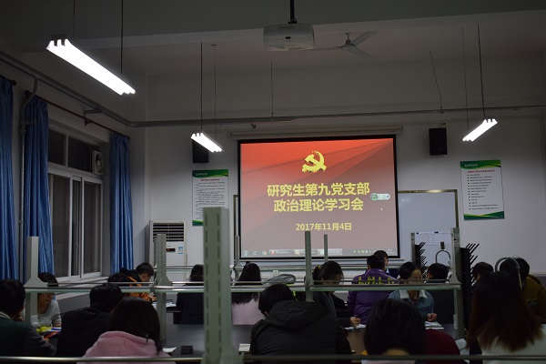 11月4日晚上7点,动科国产在线 研究生第九党支部于动科527室召开理论学习会议,为了便于大家更好学习党章、遵守党章、贯彻党章、维护党章,本次会议主题是对党的十九大通过的党章修正案进行系统、全面、深入的学习,本支部22名党员和3名入党积极分子均参与了本次理论学习会议。