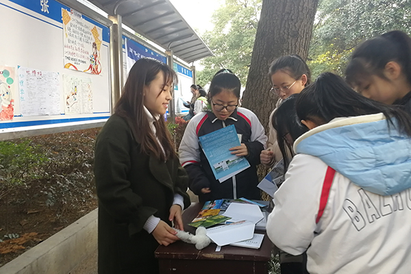 同学们认真查看宣传册