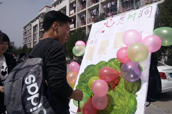 暖春时节是学生心理问题涌现的高发阶段。为了让同学们正视自己的问题和困惑,给学生搭建一个 “宣泄、表达、倾诉、慰藉”的平台,3月25日,国产在线 心理健康部在西区雕塑举行 了以“心愿树洞,宣泄压力”为主题的心理咨询活动。