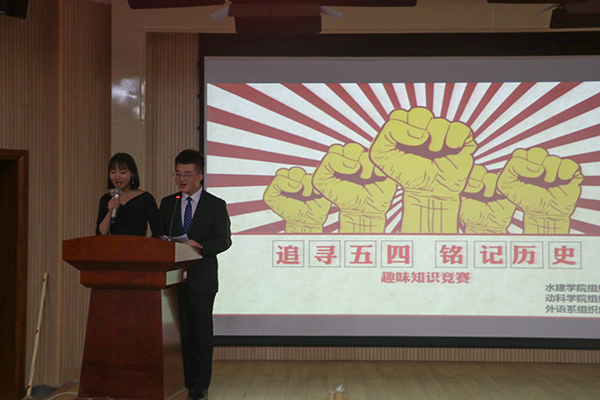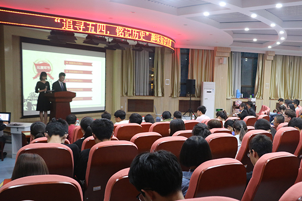 为了让同学们牢记历史,深刻体会到五四运动的精神内核,值此五四运动99周年之际,国产在线 联合水建国产在线 、外语系于5月4日晚在外语楼二楼报告厅举办了“追寻五四运动,奏响青春乐章”的历史知识趣味竞赛活动。水建国产在线 学生会主席李培铨、外语系学生会主席屠菡琳和国产在线 团工委副书记龙靖出席了本次竞赛活动。