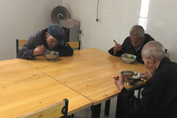 支教队一行人在田西村村主任的带领下来到超市为包饺子挑选食材,并最终选择包大众皆宜的韭菜鸡蛋饺子。食材购买完毕后,成员们便在厨房里热火朝天的忙碌了起来:有的负责擀饺子皮,有的负责剁馅。在成员们的热情和辛勤劳动下,一锅热腾腾的饺子很快就被端上了饭桌,老人们也都十分欣慰的端起碗,开心地品尝着。看着老人们满足的神情,队员们也发自内心的笑了起来。饭后同学们帮老人们收拾完碗筷便同他们拉家常、聊生活。看着他们诉说时神采飞扬的脸庞,听着他们愉悦的声音,同学们内心都涌出了丝丝感动。
