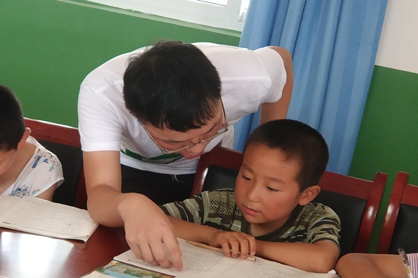 志愿者辅导孩子做功课