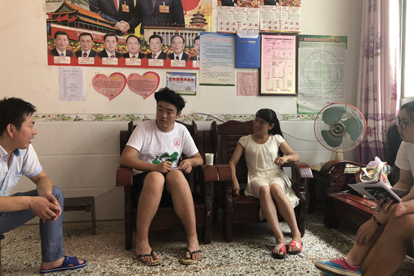 在村委会邓支书的带领下,调研小队来到了位于洞沟村的一家住户翁开霞女士的家中。通过与翁女士的交谈,小队了解了该住户的基本状况:翁女士家中共有5人,一位高龄老人,两个还在上学的孩子,以及自己和丈夫。收入方面则由外出务工的丈夫提供家庭的主要经济收入,家中在山上种有黄姜,三年一收成作为补贴,但由于夫妻二人都没有受过教育,这些微薄的收入仅能维持基本的生活。在身体健康方面,翁女士的丈夫患有慢性病,作为建档立卡贫困户可以享受到基本医疗保险、大病保险、大病补充保险、民政医疗救助、重特大疾病专项救助“五重保障”,平时在村委会卫生室买药可以全部报销,贫困户看病没有经济负担。