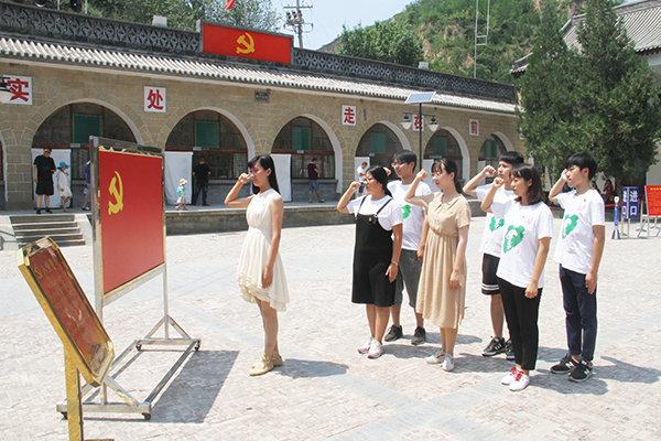 “我志愿加入中国共产党,拥护党的纲领……”在梁家河村委会大院的党旗面前,优秀学生党员在团队指导教师闫颢芯的领誓下重温入党誓词,大家面容坚毅,声音洪亮,引得往来游客纷纷驻足,啧啧称赞。