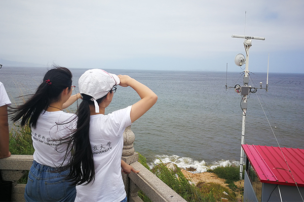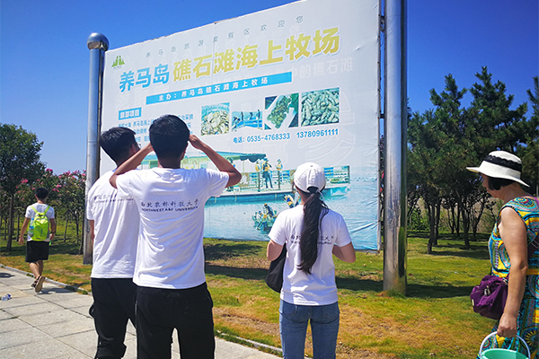 8月19日,赴山东烟台养殖业产学结合调研服务队同学们到达山东烟台养马岛,开始进行有关海水养殖的调研,并在随行的工作人员陪同下沿着环岛公路开始参观海水养殖区。