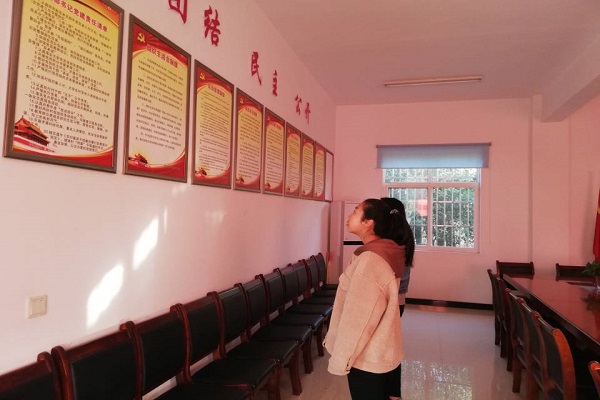 经过前期充分的准备,到达田西村后,志愿者在村委会集合并与接洽人会面。在得到当地负责人允许的情况下,志愿者们自主参观学习了党员活动室、村支部书记等干部办公室和多功能会议室。而后由妇联主席张主席介绍了党员活动室的建设历程和多功能会议室的功能。会议室主要用于举行村民大会,包括村民的日常活动、国家政策的宣传学习以及好人好事的评选等。腰鼓队的训练和村里红白喜事也会在活动室进行。在参观途中,志愿者们听取了张主席介绍的关于国家乡村振兴战略、新农村建设和田西村党员文化建设的成果。张主席自豪地说:“大的环境是要靠我们每个人去维护的,这不只是我们的功劳。”这样诚挚的话语触动了每个志愿者的心灵,大家纷纷表示受益匪浅。志愿者队长王琬婷说:“众志成城的力量是不可小觑的,我们每个团支部的建设也应该向田西村学习,人人出力,人人受益!”