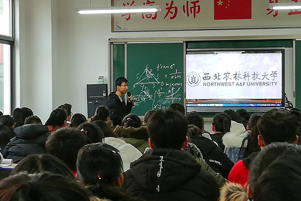 宣讲伊始,队长首先播放了一段快闪视频,从学校定位、师资力量、学科特色、科研实力、人才培养体系、招生政策等方面全面呈现了我校的魅力与实力,点燃了全场氛围,同学们纷纷赞叹不已。之后,其他队员通过发放宣传手册和纪念品,再结合PPT演讲,多层次,多方位地介绍了国产在线 的各方面信息。副校长观看了视频后赞叹道:“经国本,解民生,尚科学,这不仅是西农的精神,更应该是每个高校义不容辞的担当,西农人走在了时代的前沿。”