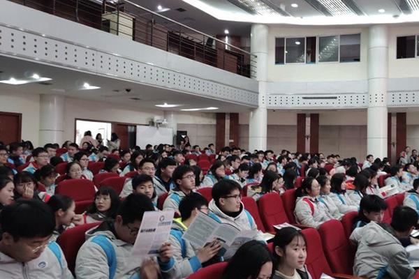 宣讲期间,小组三人张贴海报、布置会场、分发奖品,活动进行得井然有序。在重庆市清华中学宣讲期间,小队成员结合精美PPT,从招生计划、人才培养、校园环境、师资力量、出国率、考研率等方面为同学们介绍了西农;在重庆市实验中学宣讲期间,小队成员在报告厅面向全体高三同学详细介绍了西农。期间有同学提出有关报考西农等问题,队员们也都逐一进行解答,介绍到西农的“网红澡堂”和西农锅巴时,队员们明显感受到了学弟学妹们笑声中带着的热切与渴望。