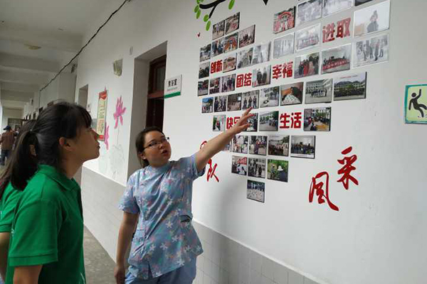 在敬老院陈主任的带领下,队员们参观了敬老院内的餐厅、活动室、洗浴室、电视室等,配套设施齐全,功能完善,环境优雅。在敬老院内还有一面爱心墙,上面有老人们平时生活和集体活动的照片,以及一些爱心服务队拜访敬老院时的合影。在这里队员们看到的不仅是老人们生活条件的改善,更是镇巴简池扶贫工作的巨大进展。