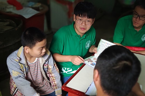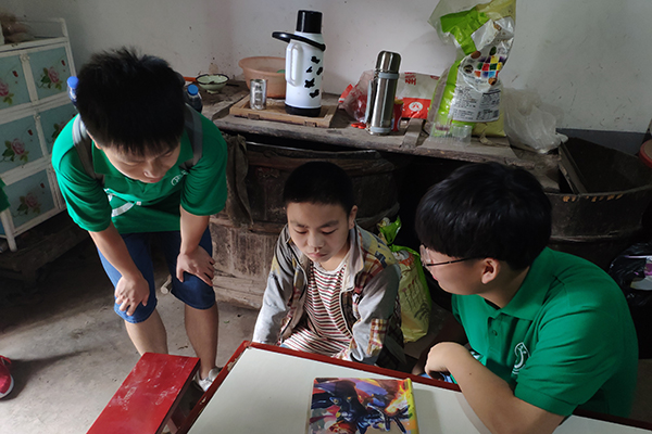 在和小朋友进行了交谈之后,队员们了解了他的学习情况,并尽其所能给小朋友辅导功课。在辅导功课的过程中,队员们发现小朋友课本上满满都是笔记。通过与小朋友的交流,队员们了解到小朋友爱好学习,尤其是语文与英语。在辅导功课的同时,队员们还鼓励他多读书,好好学习,努力靠知识改变命运。队员们还了解到经常会有政府领导和爱心人士来看望他,并为他捐赠一些书本和生活用品。