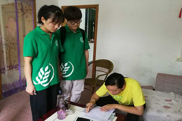 早晨,天空下起了小雨,给燥热的季节送来缕缕清爽。在镇长的带领下,队员们冒着小雨步行来到距离简池镇10多公里的李塘村,开始入户调研。队员们简要说明了此次走访的目的,介绍了西农历史以及团队成员,随后指导当地居民完成调查问卷。本次调查共采访了李塘村51户人家,收获有效问卷47份。